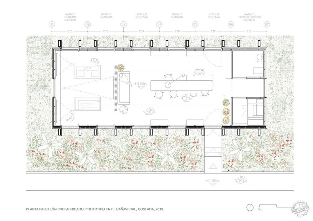 與未定義區域的高效能量反饋。由于項目的地點位置,展館因此需要能夠適應任何場地和形態,建筑師在地面層設計了適應性基礎系統,其外部元素也依據各種氣候因素進行布局。